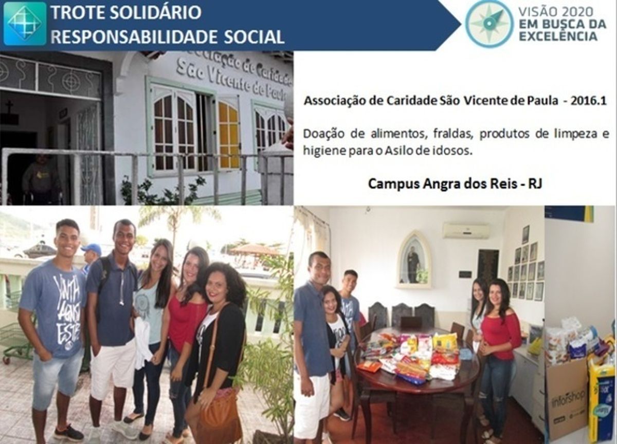 Trote Social: arrecadação de alimentos, fraldas, produto de limpeza e higiene.
